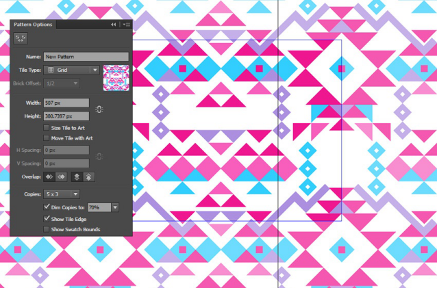 選擇您的設計組并打開“圖案選項”以創(chuàng)建新圖案。確保您的設計樣本中沒有任何間隙。如果是,請通過更改“圖案選項”面板中邊界框的寬度或高度來調(diào)整圖案的邊界。