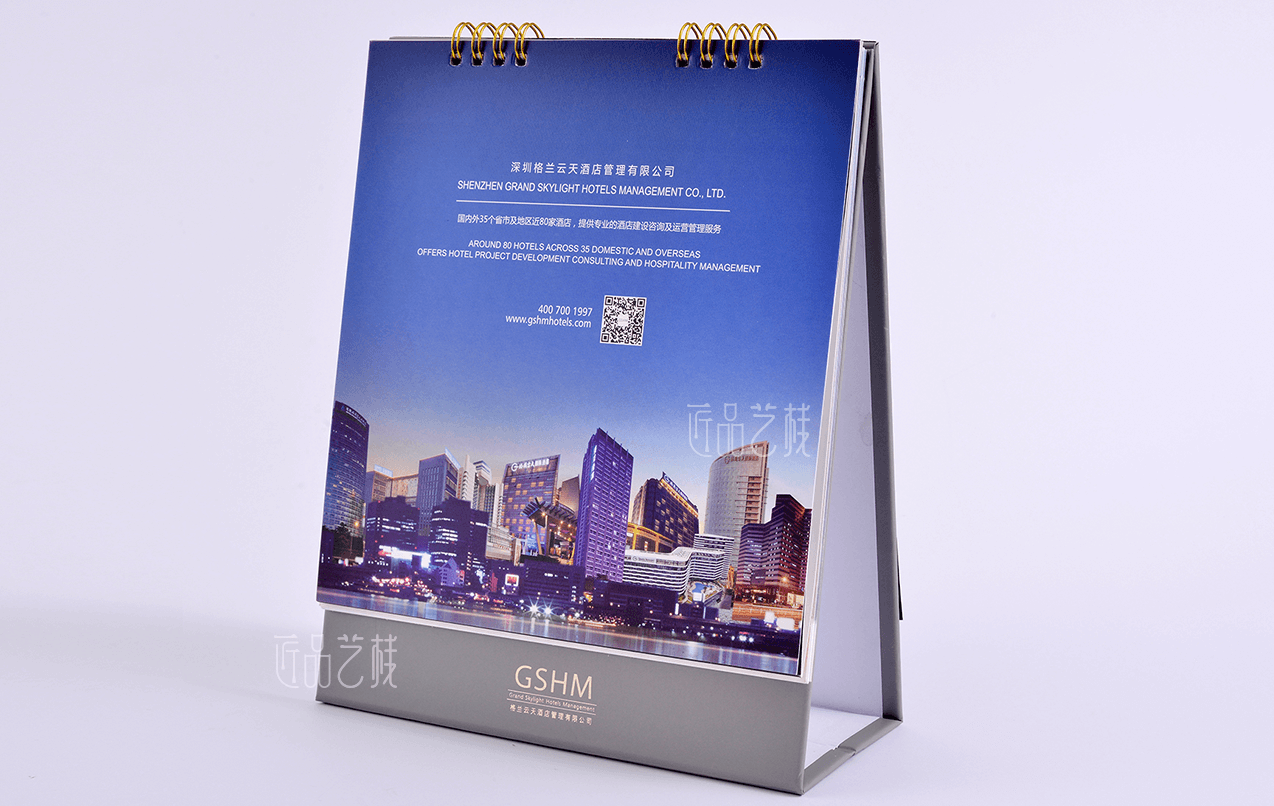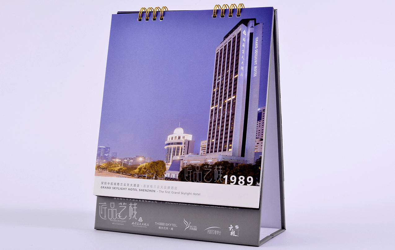 格蘭云天酒店管理公司致力于高端酒店市場,打造國內(nèi)一流的民族酒店品牌和國際水準的酒店管理公司,在格蘭云天酒店的臺歷的定制中,亦采用高端的扣環(huán)精裝方式和特種紙張工藝等精制而成,亦是在專版臺歷與酒店臺歷訂做中的又一本高端臺歷印刷定制項目。