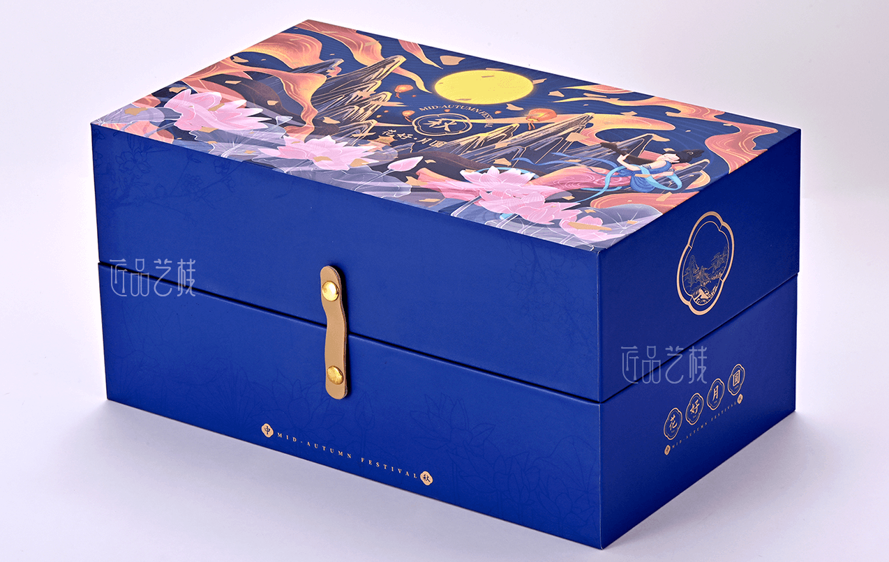 花好月圓文創(chuàng)禮盒,是為中秋佳節(jié)原創(chuàng)的一款創(chuàng)意定制禮盒,采用國潮風格的原創(chuàng)插畫設計,創(chuàng)新的禮盒形結(jié)構(gòu),運用特種紙張印刷,以及燙印、逆向UV等精制工藝,使花好月圓禮盒成為文創(chuàng)創(chuàng)意領域又一支獨秀。
